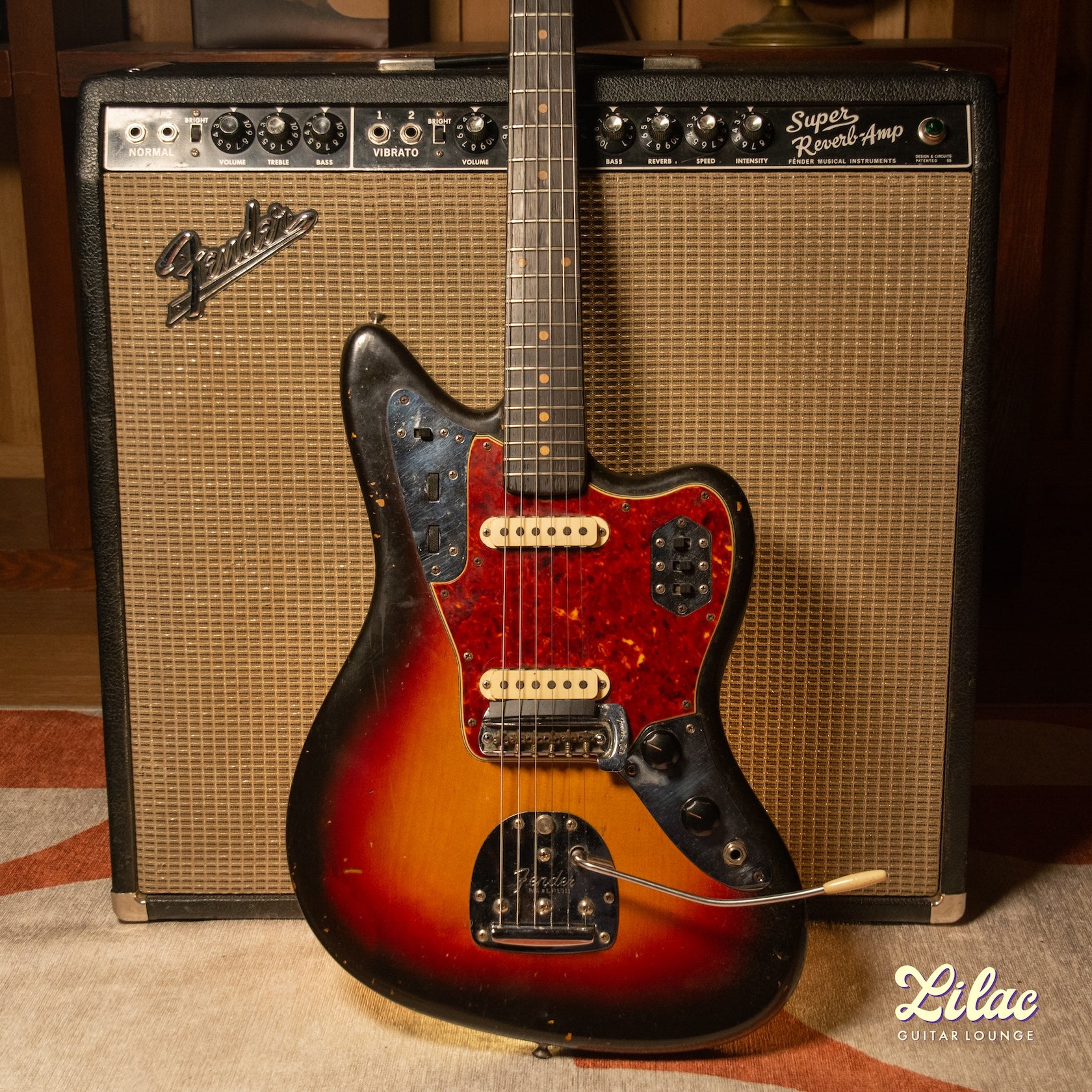 This is a wonderful 1963 Fender Jaguar, and will please any Jaguar enthusiast. It plays great, looks amazing, and is 99% original, if collecting is your thing. We love this guitar and know that its next owner will too! Sunburst Fenders may be common but its still fun to get these in the shop, each one is slightly different and this is one of the good ones. If you have any questions at all about this guitar, do not hesitate to reach out to us at LilacGuitarLounge@gmail.com or message us on our website, or our instagram @LilacGuitarLounge.